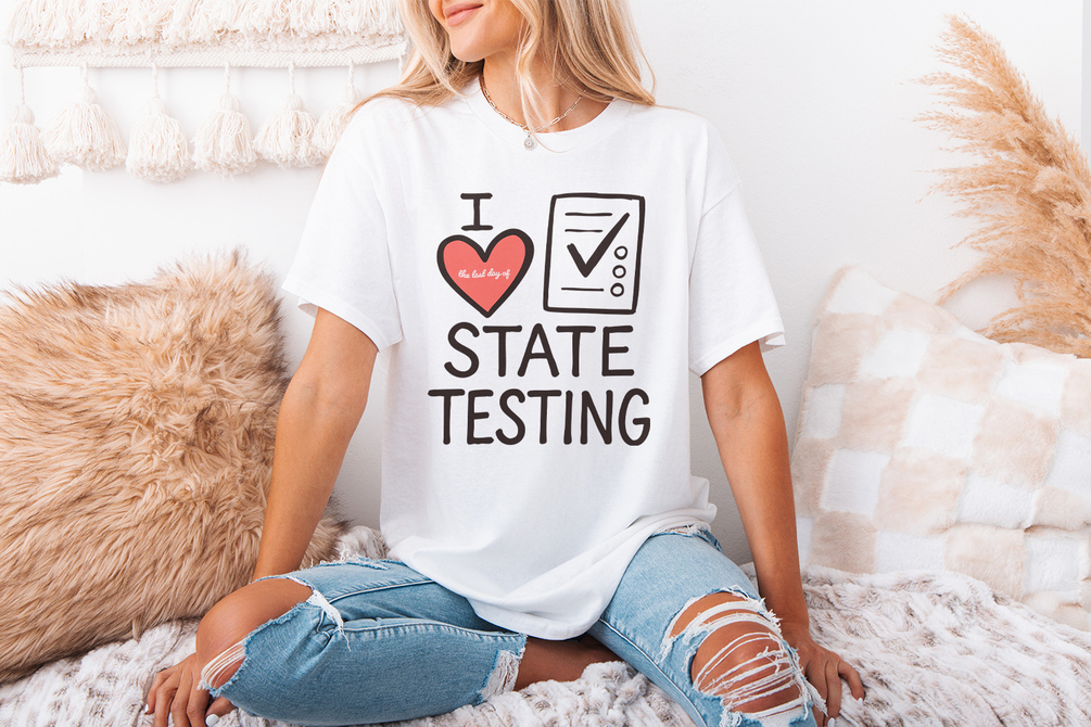 I Love State Testing Shirt, Funny Teacher Gift, State Testing Humor, Teacher Appreciation, Digital Download PNG, Classroom Fun Tee Design